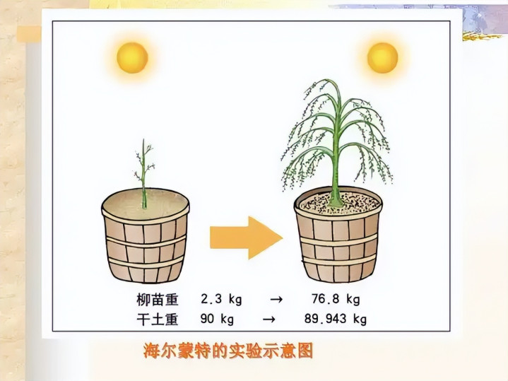 最后树长到169磅,土壤就少了2盎司,这实验明明说明树的重量不是来自土壤,可他偏说这是水变木头。